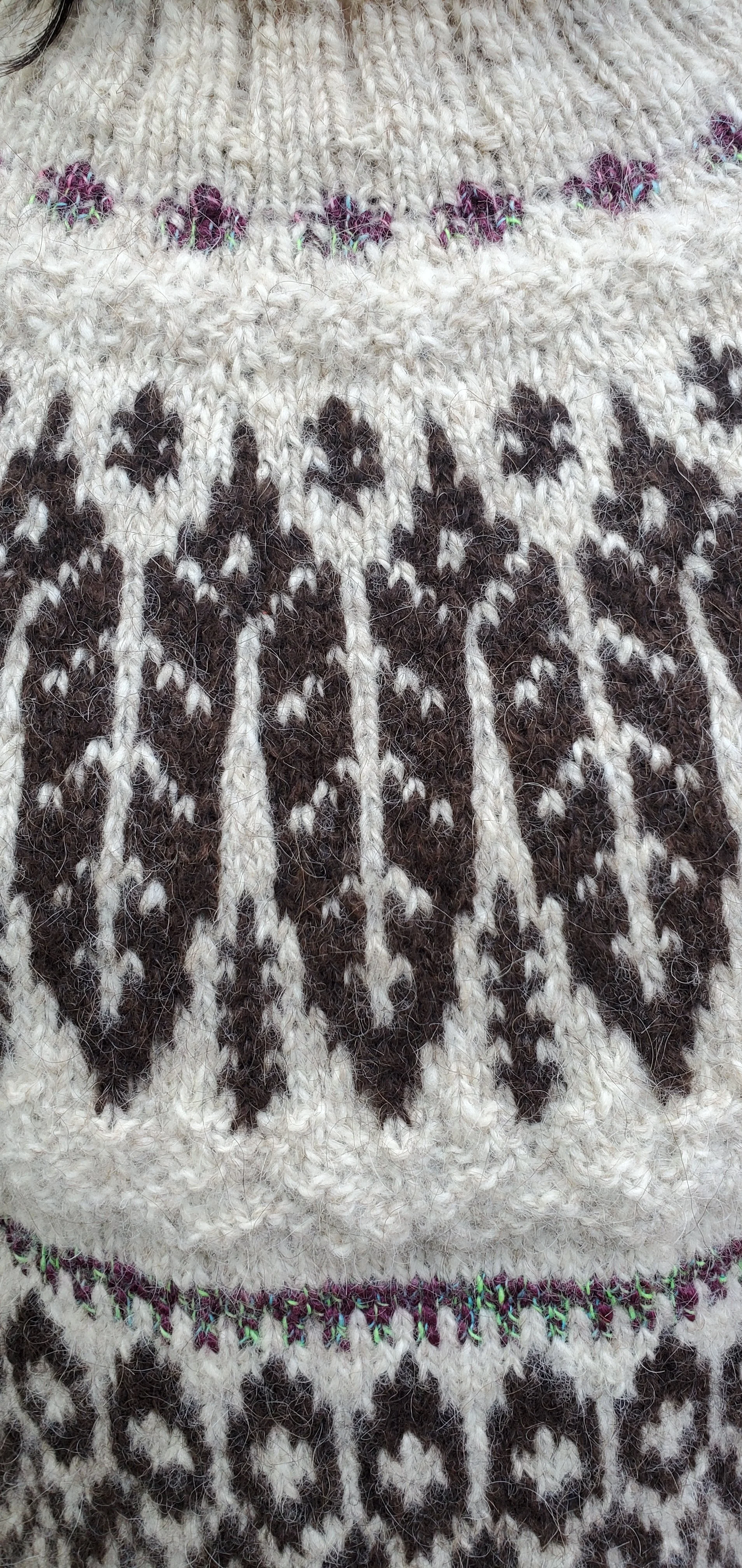 The Fisherman’s Wife by Kalurah Hudson knitted by Sue of blackberryheritagefibers on IG / Etsy: Blackberryicelandics (BTW, these are her handmade buttons too)